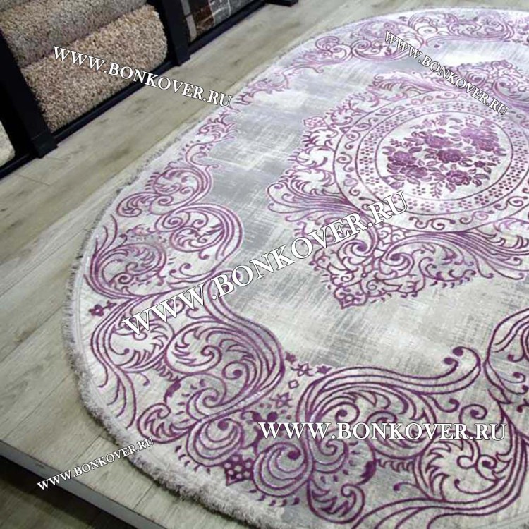 Ковер Турция Для Гостиной Дизайн 75 Сиреневый Овал станет превосходным дополнением интерьера, оформленного в современном или классическом стиле. Мягкое, но прочное, ковровое изделие обеспечивает тепло- и шумоизоляцию, отличается длительным сроком эксплуатации, пожаробезопасностью, экологичностью и высокой износостойкостью, является отличной гарантией от повышенной влажности в комнате и утеплителем для холодного пола. Благодаря качеству материалов, ковер не деформируется, сохраняет первоначальный вид под тяжестью предметов мебели. За его поверхностью легко ухаживать.